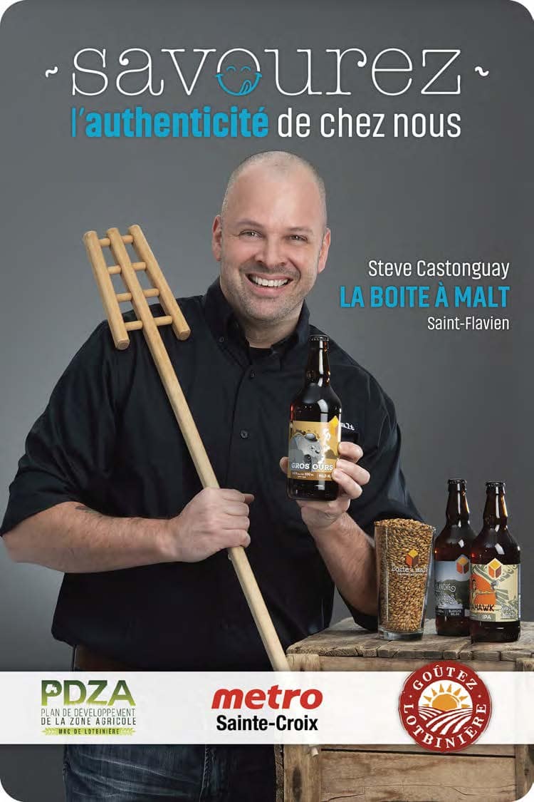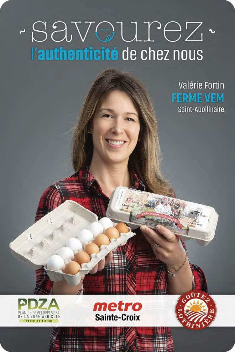 Au total, six producteurs agroalimentaires de Lotbinière sont mis en vedette sur les étagères du Métro de Sainte-Croix.   «  Lorsqu’on parle d’achat local, je pense que tout le monde doit faire sa part, les municipalités, les entreprises, les citoyens, bref tous doivent contribuer et je suis fière de participer à ce mouvement » mentionne Mylene Dubuc responsable du Métro de Sainte-Croix.